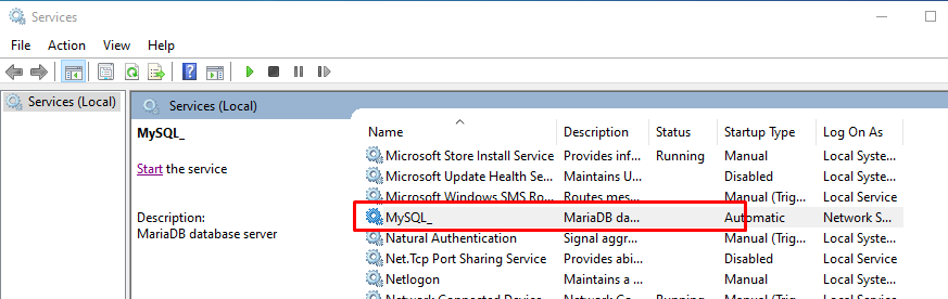 Start the “MySQL” service (starting the MariaDB database)