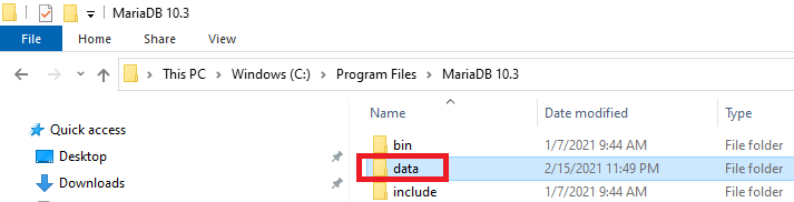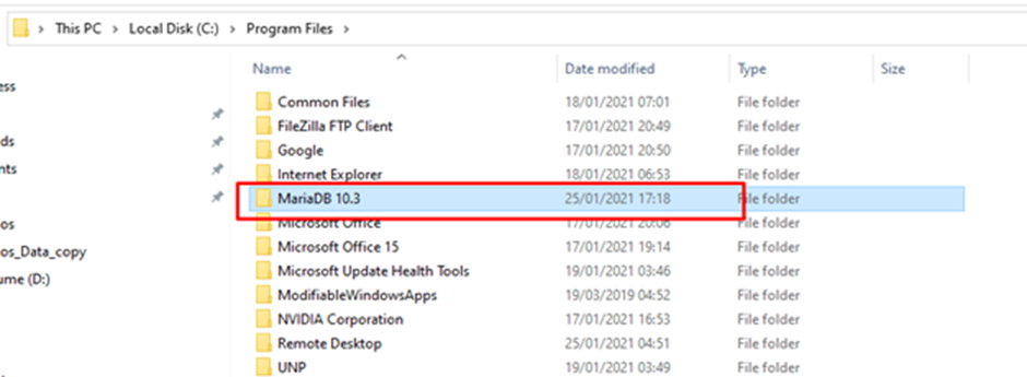 Identify and open the directory containing the MariaDB installation (it will be called “MariaDB xx.xx” depending on the version installed)