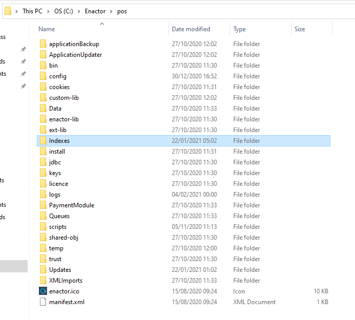 To verify the copy of the indexes, open the Enactor POS application