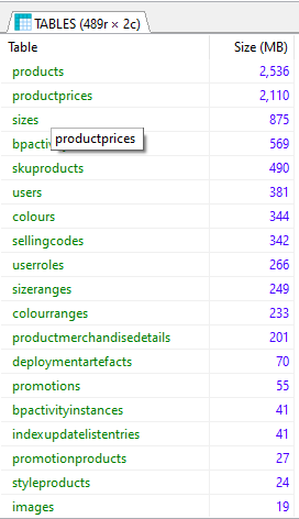 ROUND((DATA_LENGTH + INDEX_LENGTH) / 1024 / 1024) AS `Size (MB)`