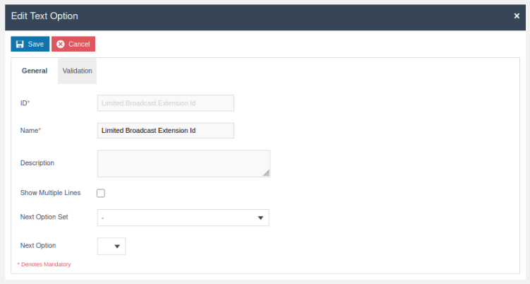 Next, the Limited Broadcast Extension Id and the Broadcast Download ProxyUrl should be defined for client device. For this, navigate to the relevant client configuration set that you are using for your device and configure the appropriate Broadcast Download ProxyUrl based on the validation environment being used and enter the Limited Broadcast Extension Id as follows: