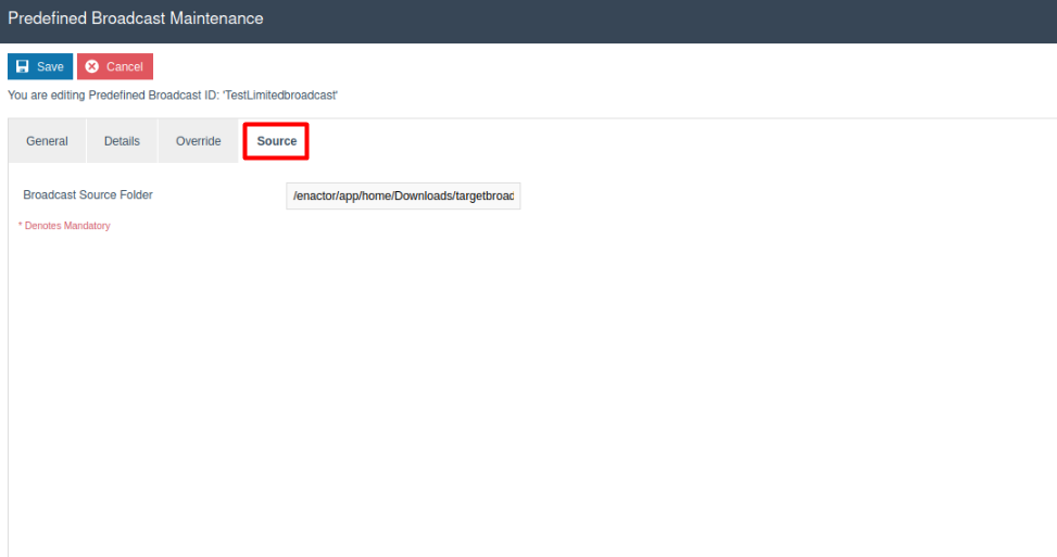 Note: Ensure that the Broadcast Source folder path in the predefined Broadcast ends with a "/".
