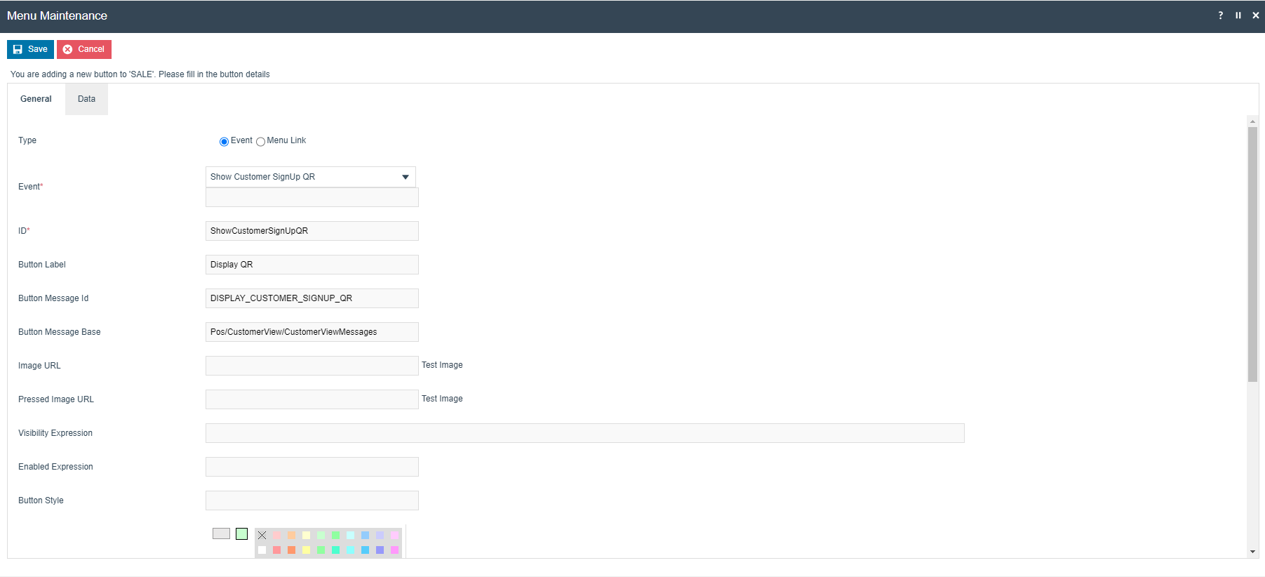 This section contains the Menu button that need to be added to enable Customer Registration through QR Code.