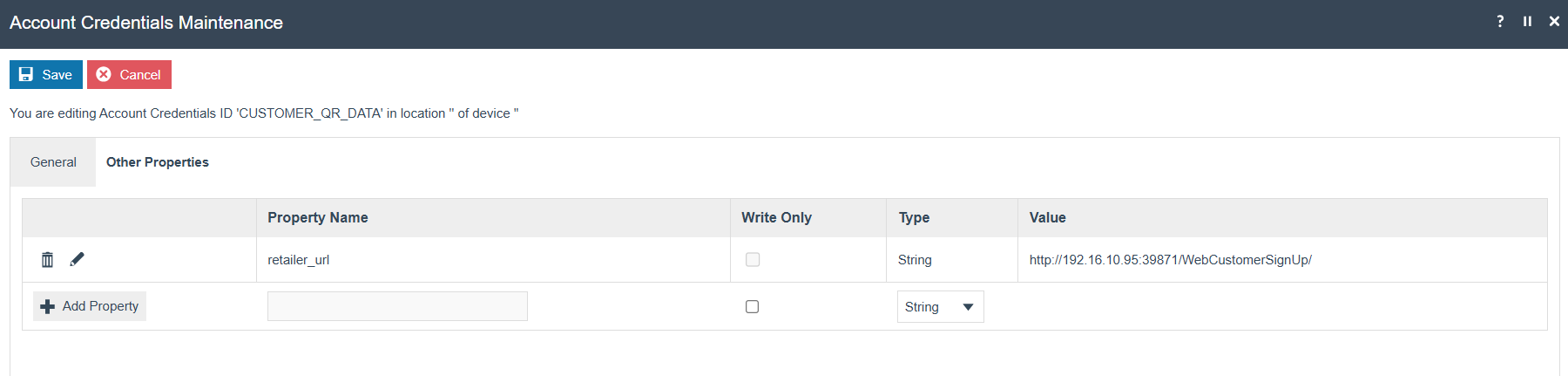 This section contains the Account Credentials that need to be added to enable Customer Registration through QR Code.