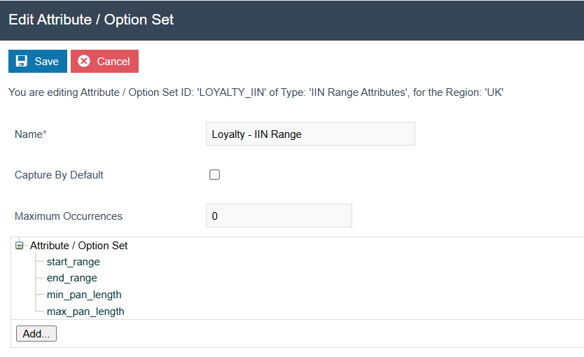 Create a new Option Set with the ID of LOYALTY_IIN and add the following text options: