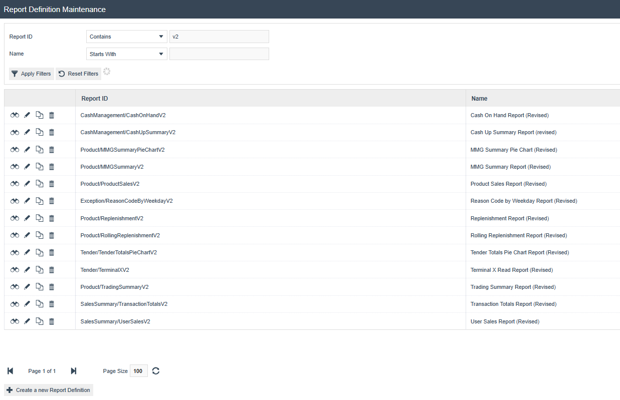 Note: A full list of the enhanced Report Definitions can be found in the Report Definition Maintenance as follows: