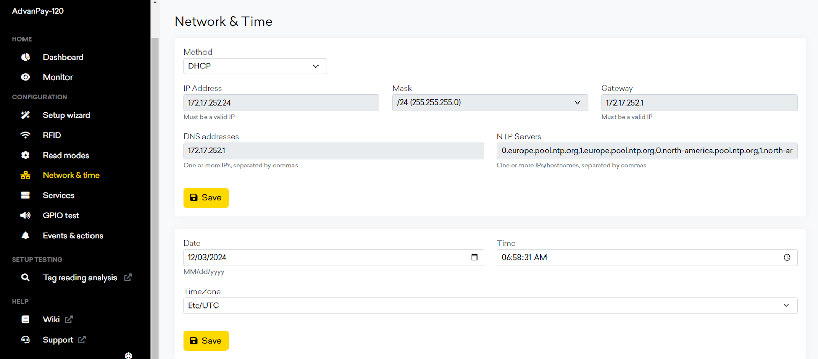 Enter the IP address of the Keonn Reader into a browser to open its web interface.