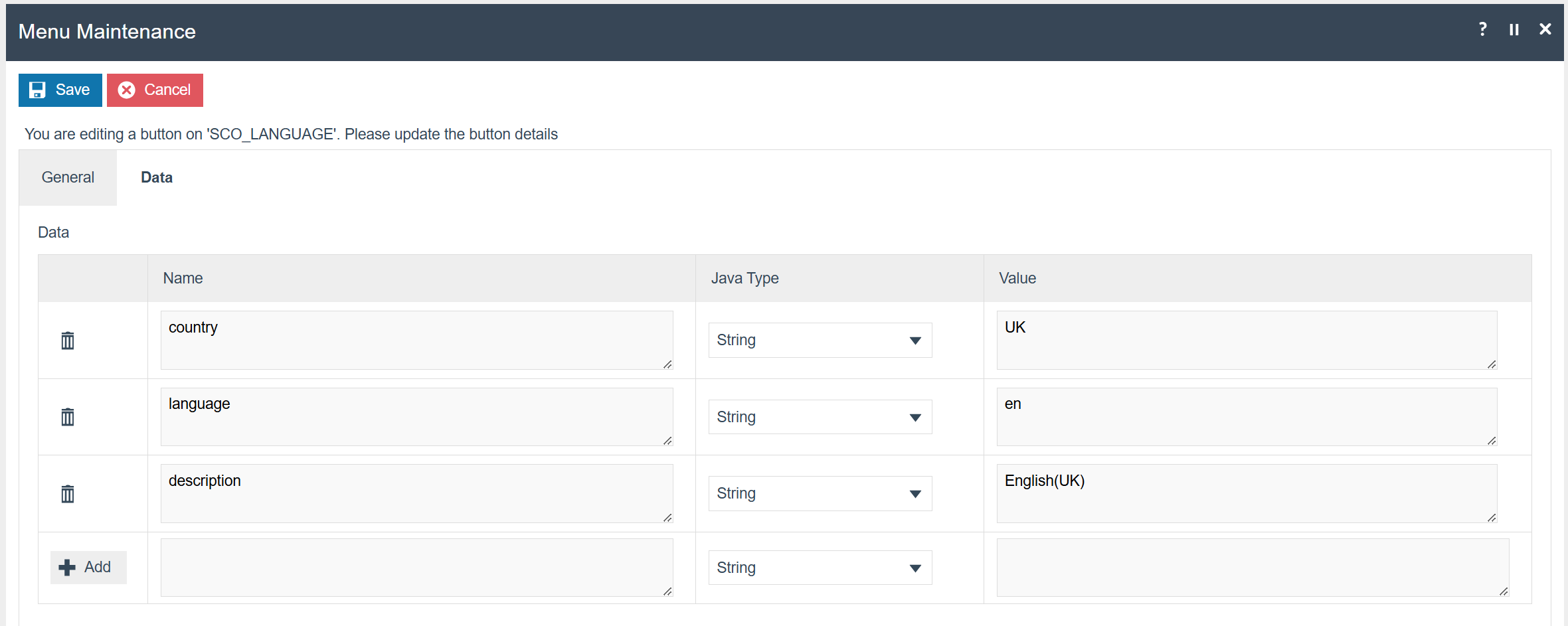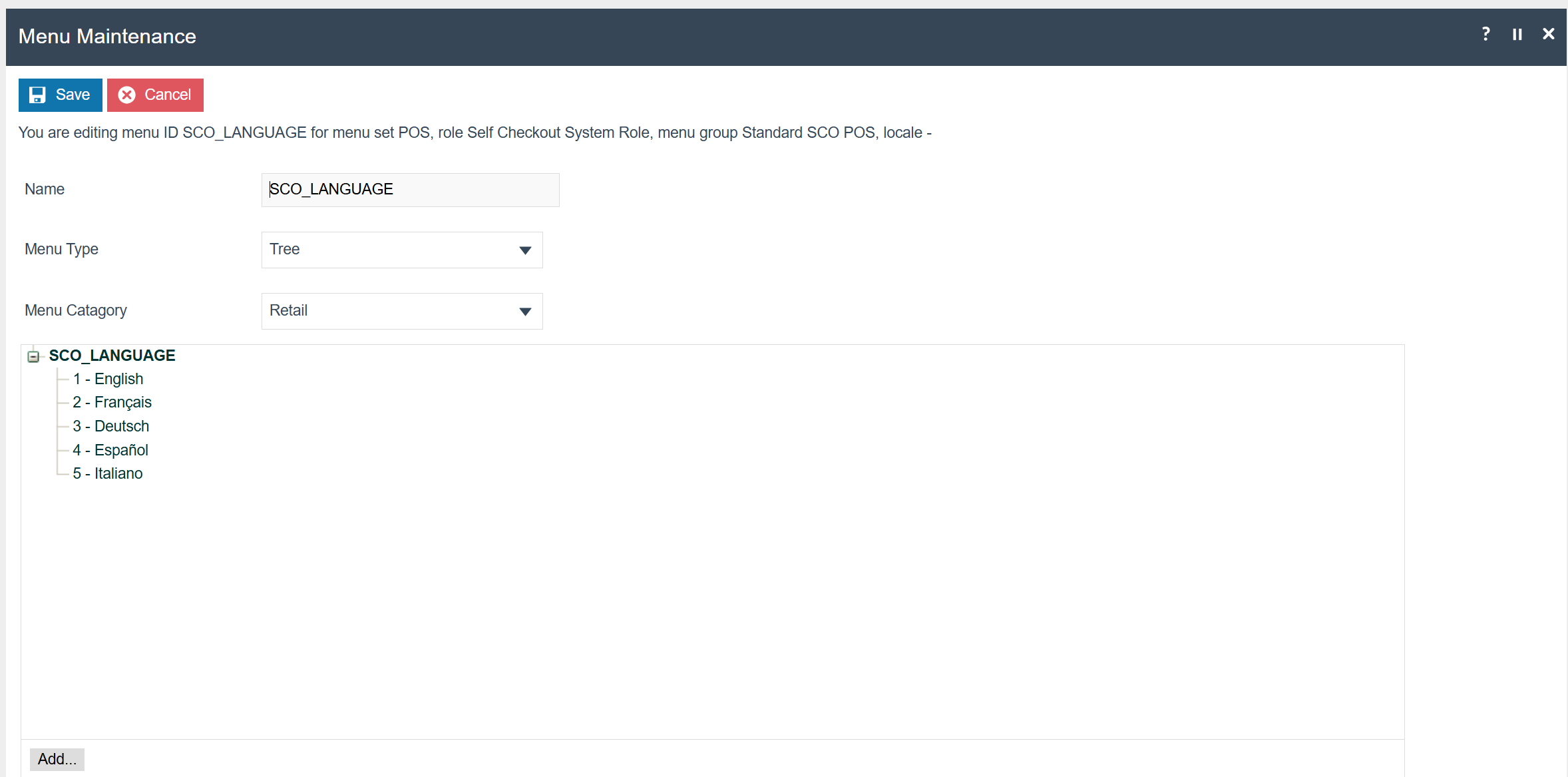 | Menu ID | SCO_LANGUAGE | The menu ID MUST be set to SCO_LANGUAGE |