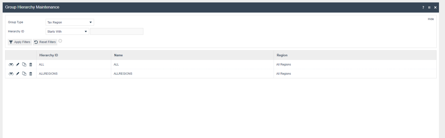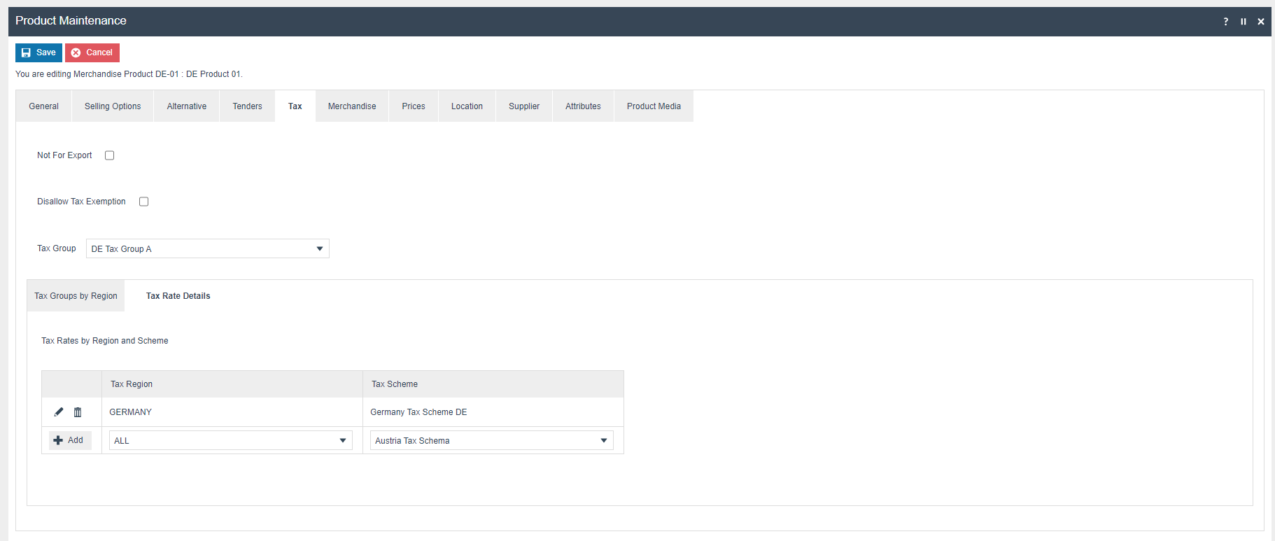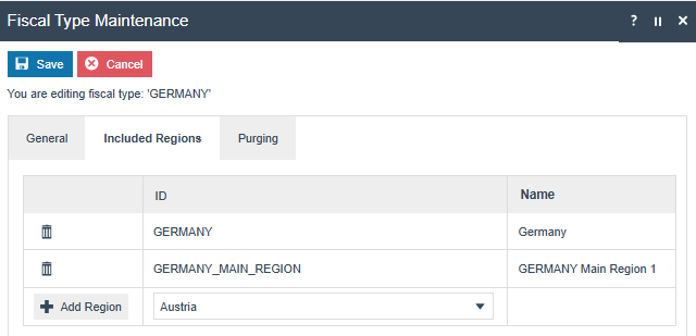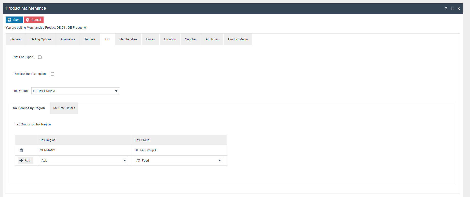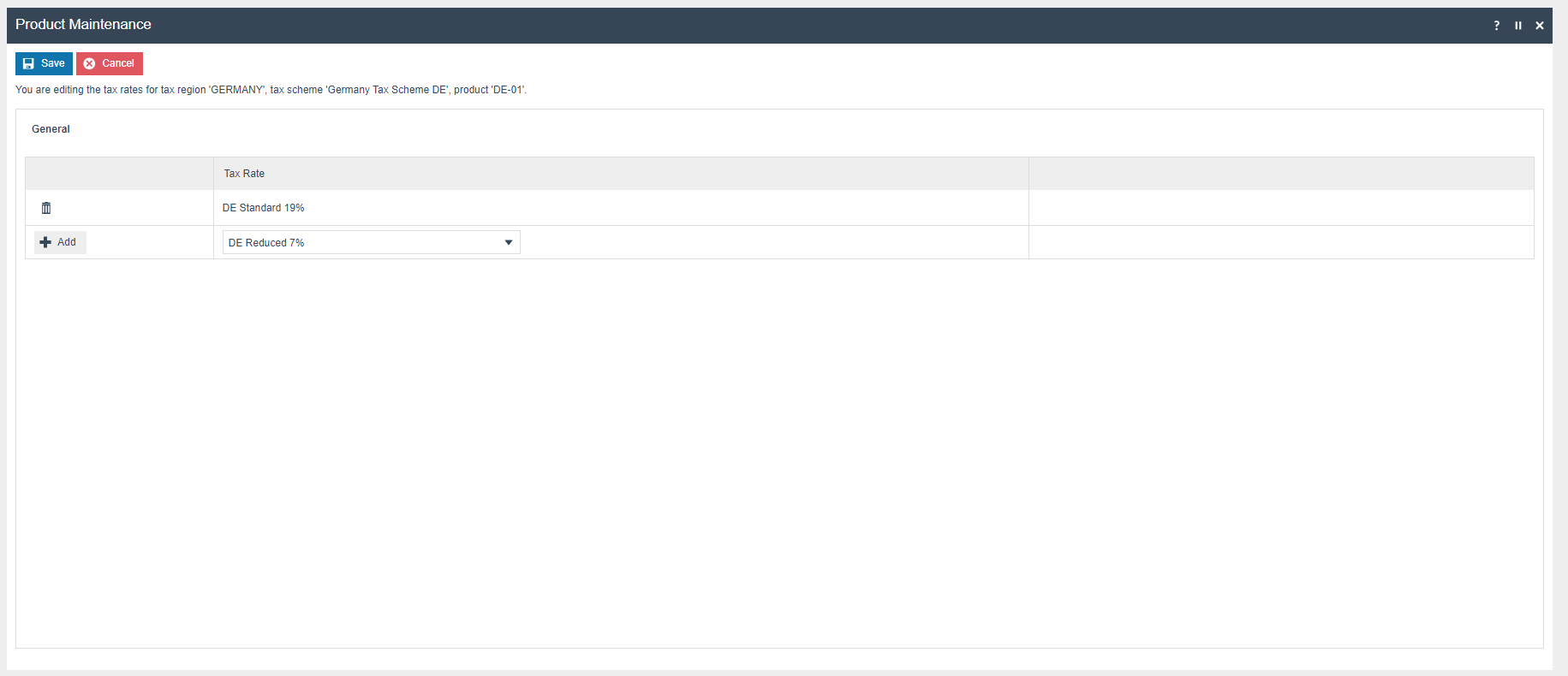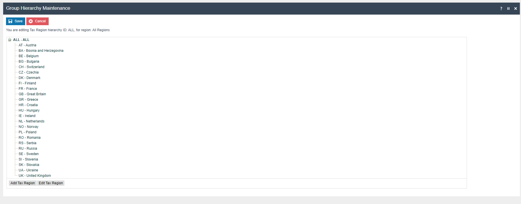 If it does not already exist, a Tax Region for Germany should be created within the Tax Region Group Hierarchy. It should have the ID: “DE” and the Name: “Germany”, it is not necessary to configure an External Reference ID.