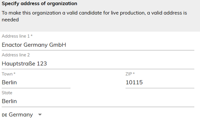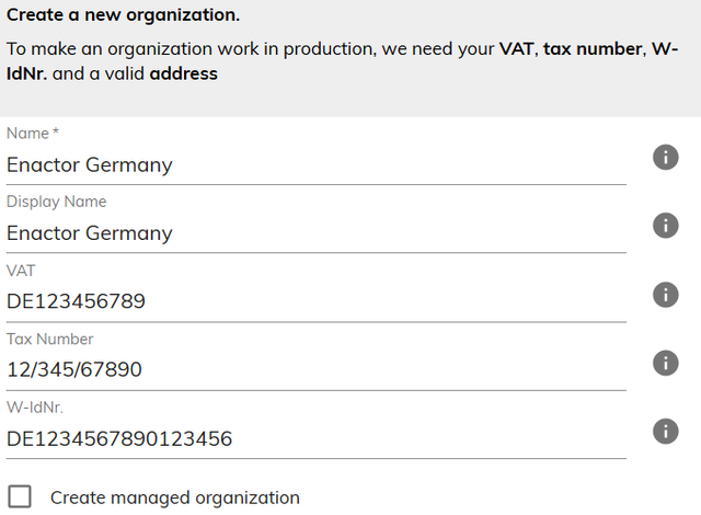 The details in the Organization section below should be filled in. (Refer to the example below)