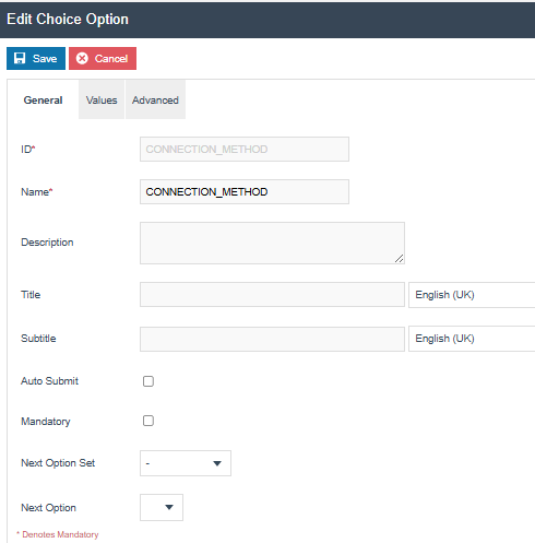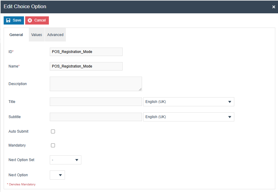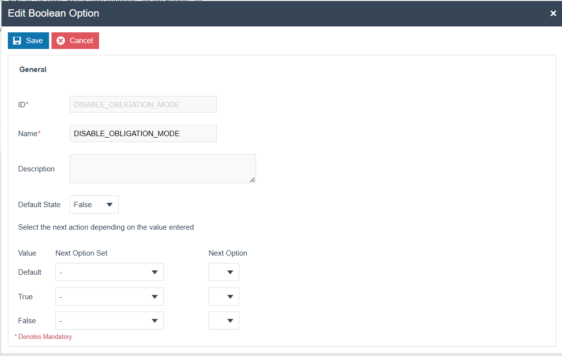 Set the option name and ID as “DISABLE_OBLIGATION_MODE”. (Mandatory configuration to turn off obligation mode: It will work in obligation mode if it is not set or unticked. This flag should be ticked to turn off the obligation mode.