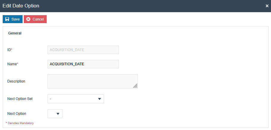 A new Option Set should be created with the following properties for the Fiscal Type Maintenance Type. Although users have the flexibility of exporting the Option Set through the File export maintenance and uploading via File import maintenance in Estate Manager.
