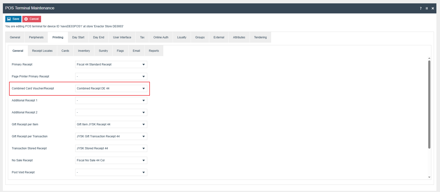 The primary Receipt should be set to Fiscal 44 Standard Receipt and no sale receipt should be set to Fiscal No Sale 44 Col.