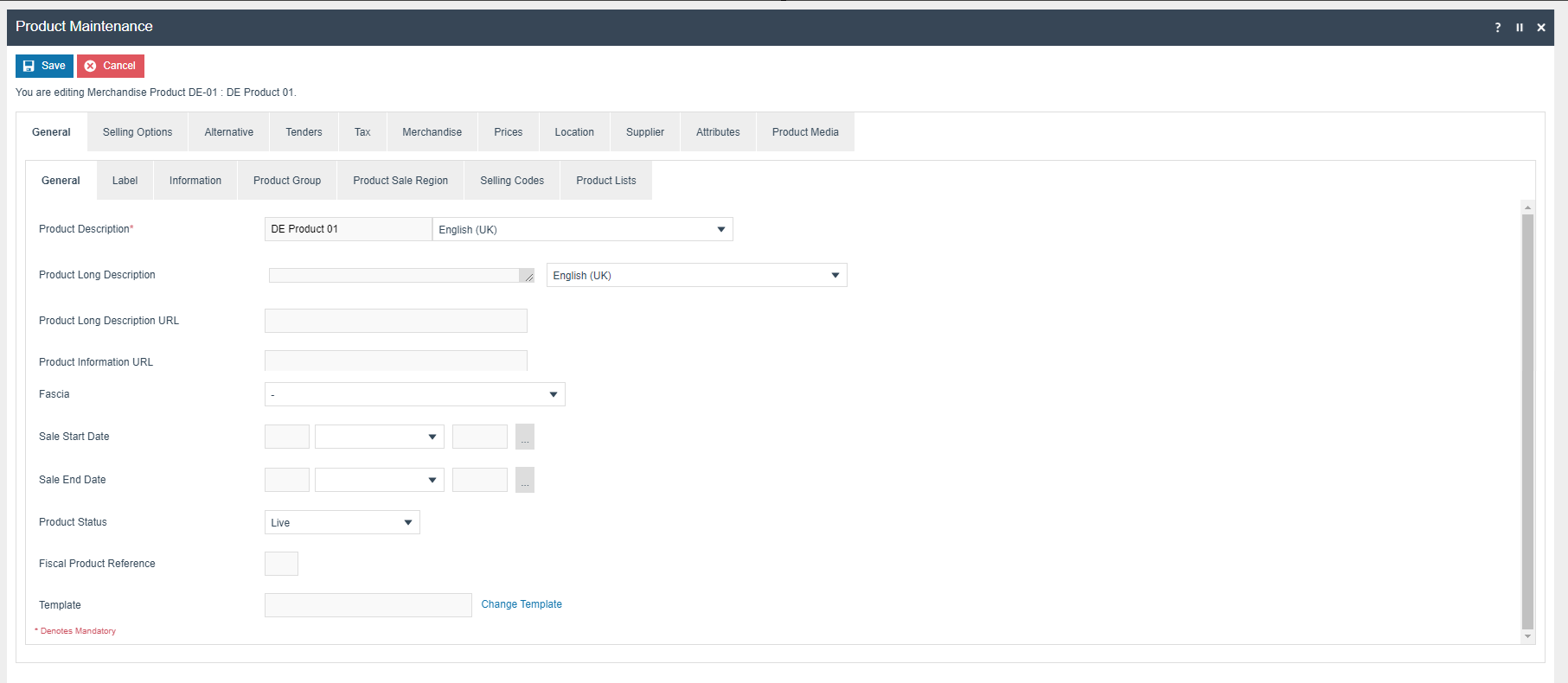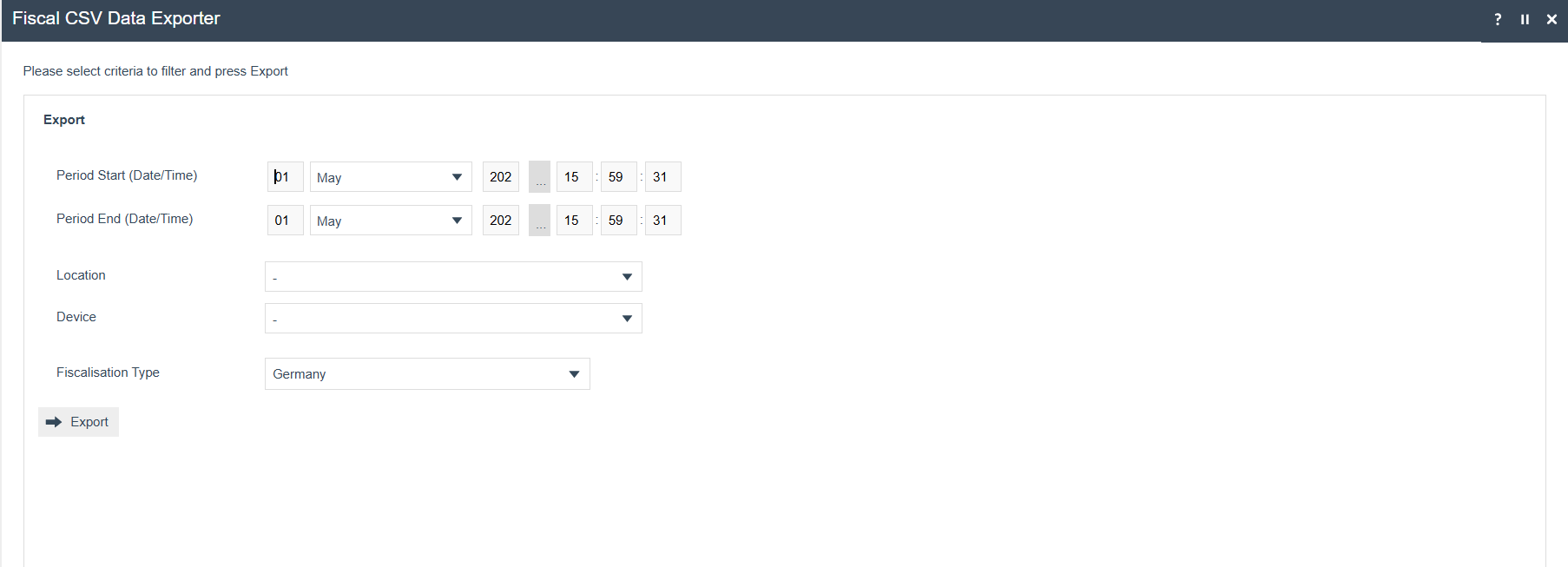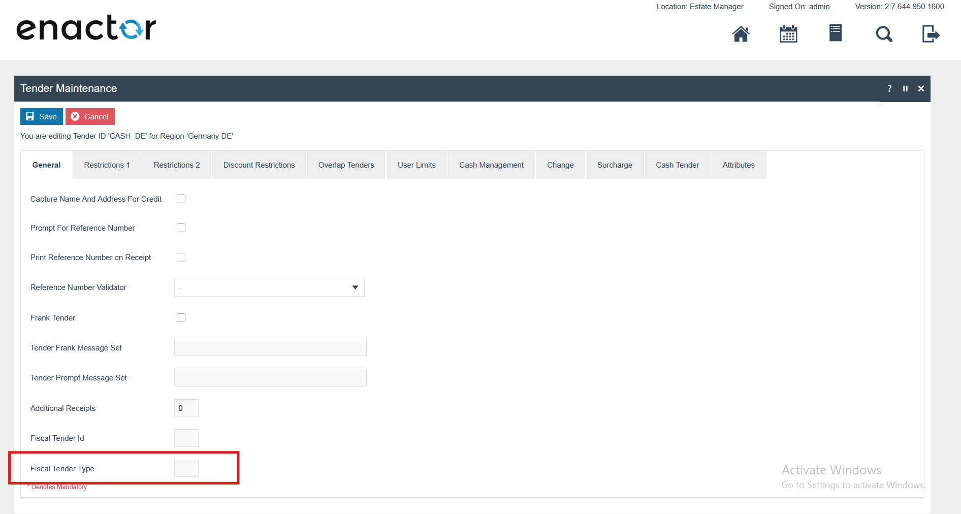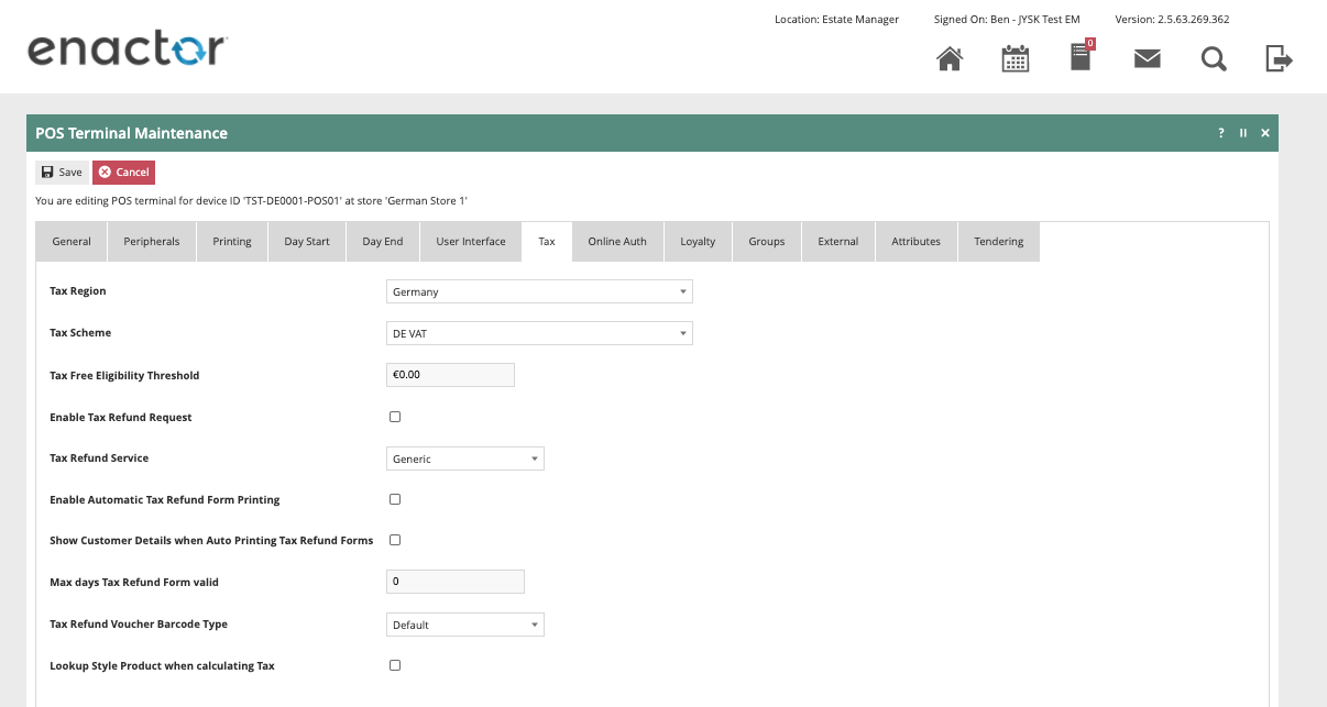 The POS Terminal Template used by all devices in Germany must be configured to have the fiscalisation Type set to Germany. Currency should be set to Euros and Locale to German.
