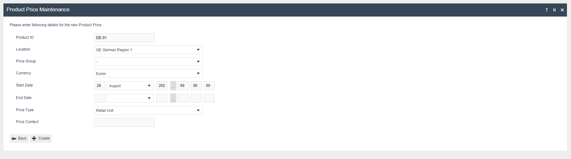 Create a new Region group, Tax Region and Price group for Germany as below.