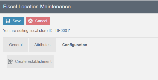 For Unregistered locations, the Configuration tab appears as shown below, and the “Create Establishment” button is displayed within the tab.