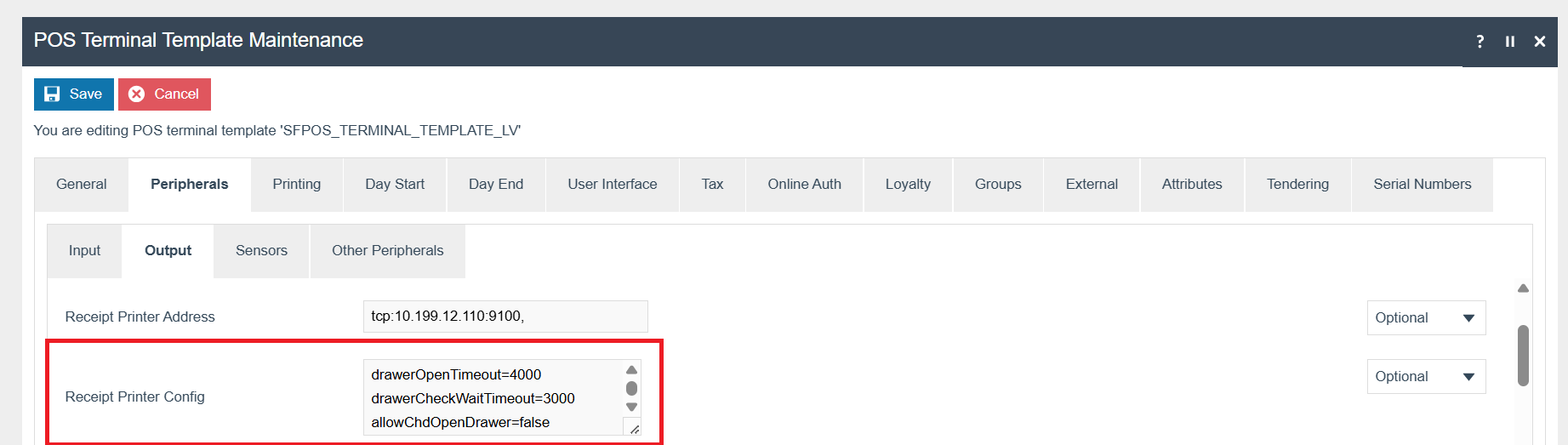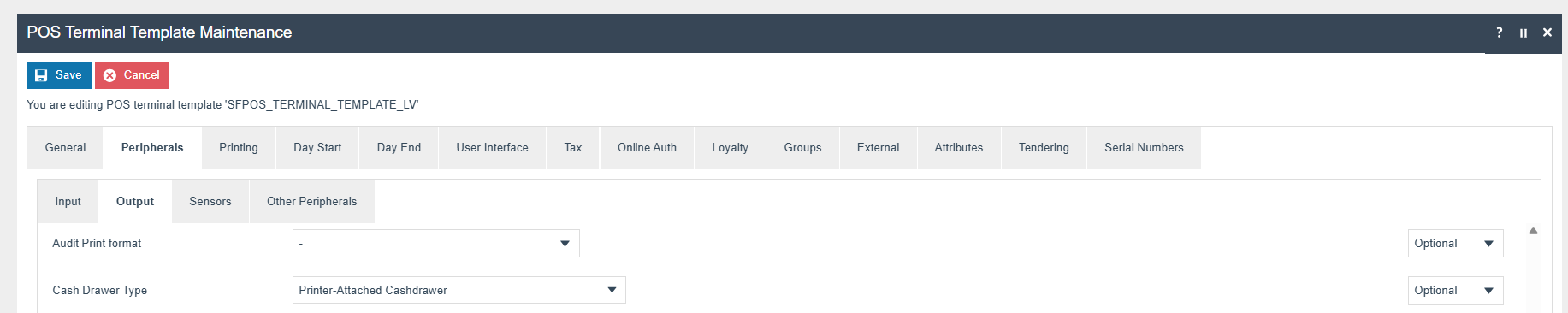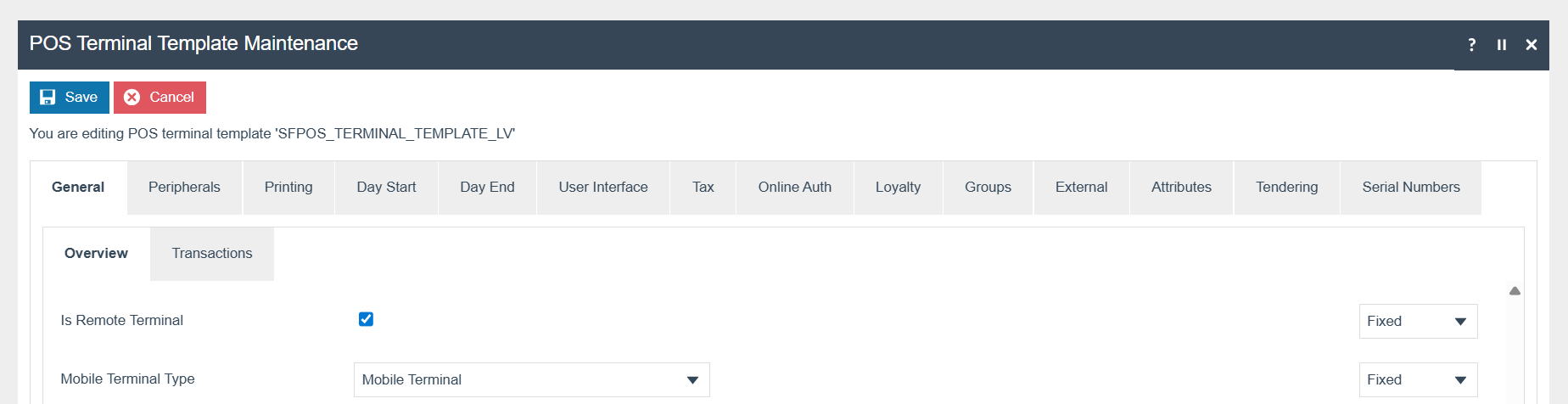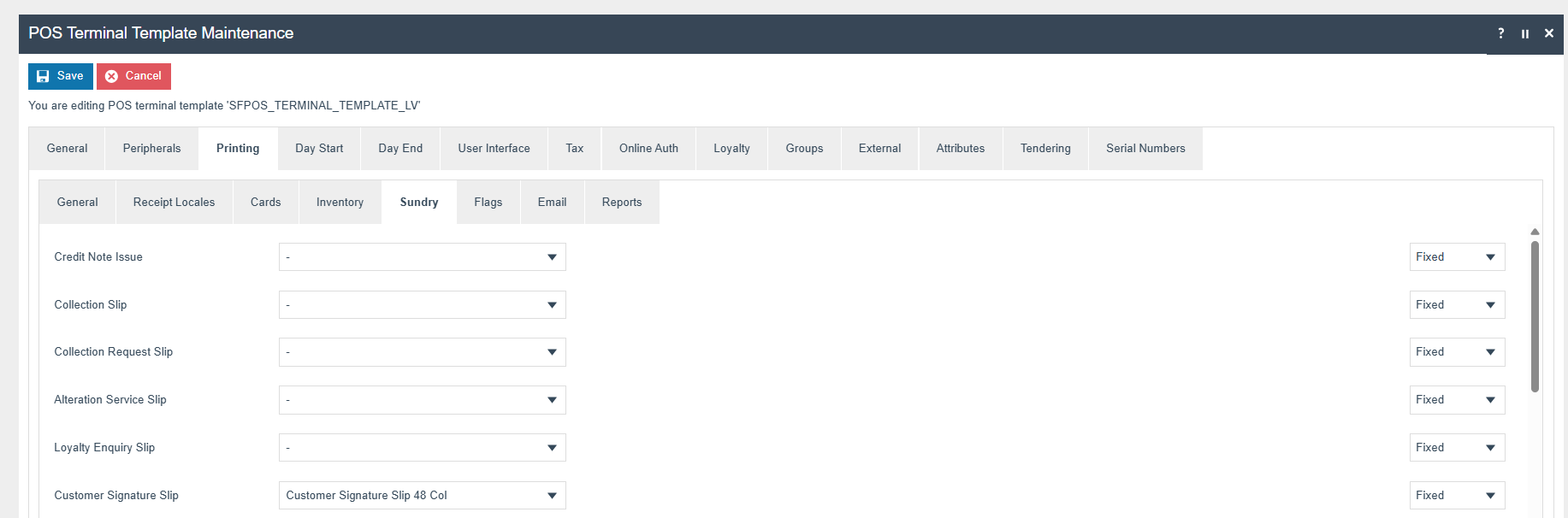 Edit the relevant POS Terminal Template