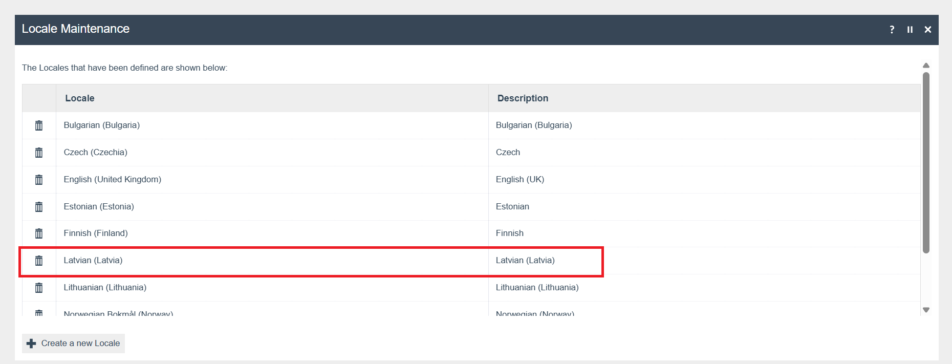 The following Locale should be configured and broadcast to the appropriate Latvia devices.