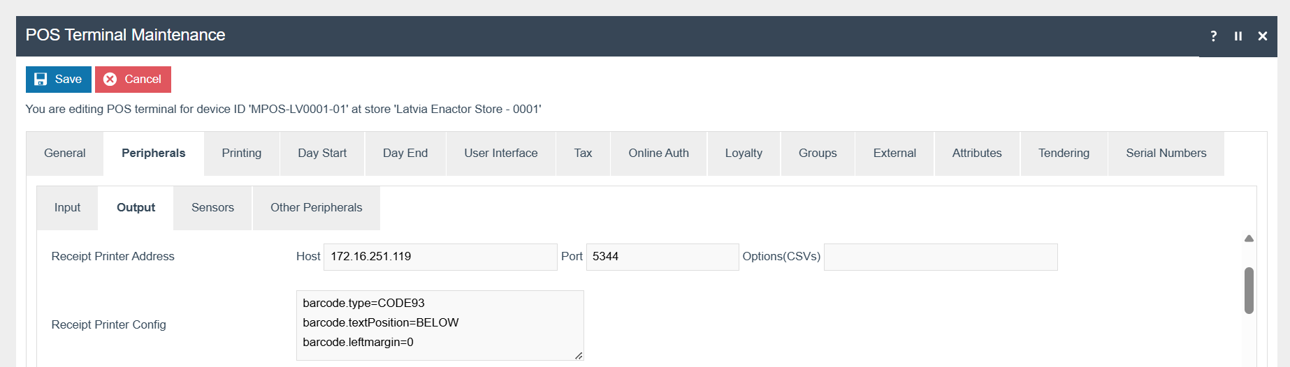 The following configuration changes are required and must be broadcast to all Latvia devices in preparation for go live. Detailed steps for how to do this are contained in supplementary How to Guides available on the Enactor Insights portal, as well as being covered in the Introduction to Enactor training course. Although steps have been taken to ensure that the POS will not start or perform transactions without a valid configuration it is the retailers responsibility to ensure a valid configuration is present and not to try to circumnavigate any of the requirements of the Latvia Fiscal Legislation through misconfiguration of the solution.