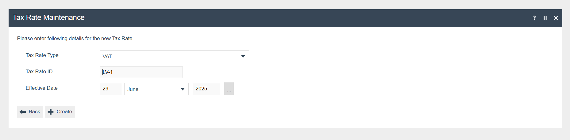 Select VAT as Tax Rate Type