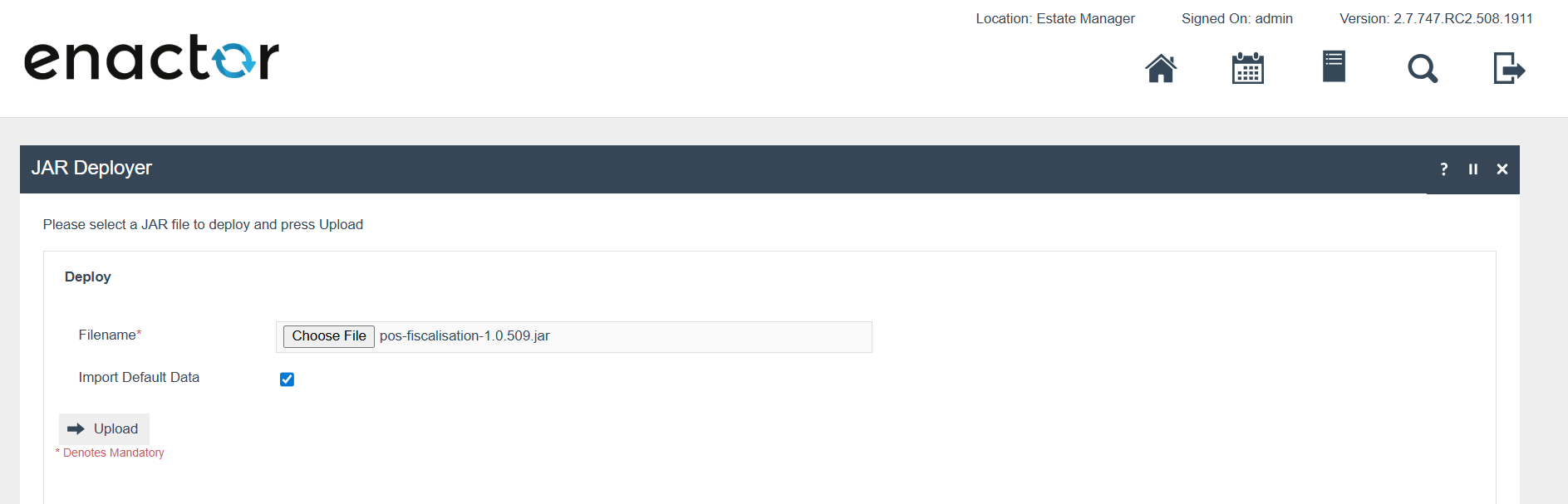 Deploy the pos-fiscalisation JAR using the JAR Deployer