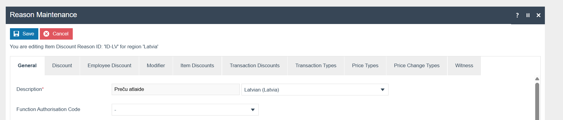 Discounts should have a Latvia translation for the description.