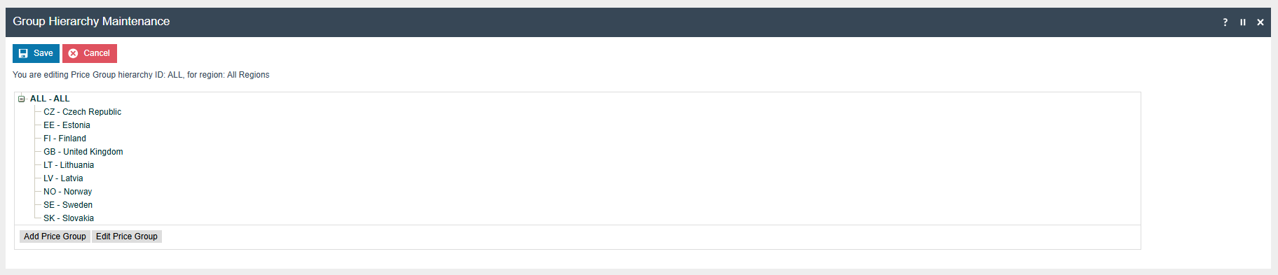 If it does not already exist, a Tax Region for Lithuania should be created within the Tax Region Group Hierarchy. It should have the ID: “LT” and the Name: “Lithuania”, it is not necessary to configure an External Reference ID.