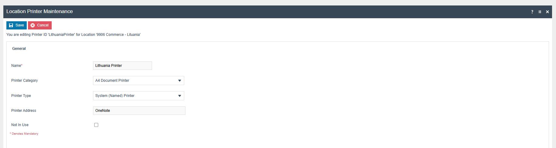 Printers created under the location printer maintenance should be listed under the Primary Printer dropdown.