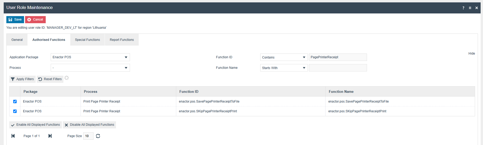 Note: The following privilege needs to be removed for the Lithuanian Cashiers: enactor.pos.AutoSignOffStoreTransaction