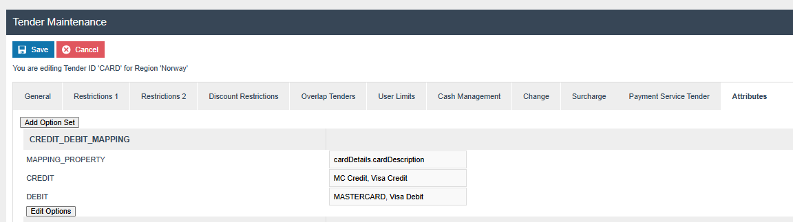 **Attribute / Option Set - **CREDIT_DEBIT_MAPPING