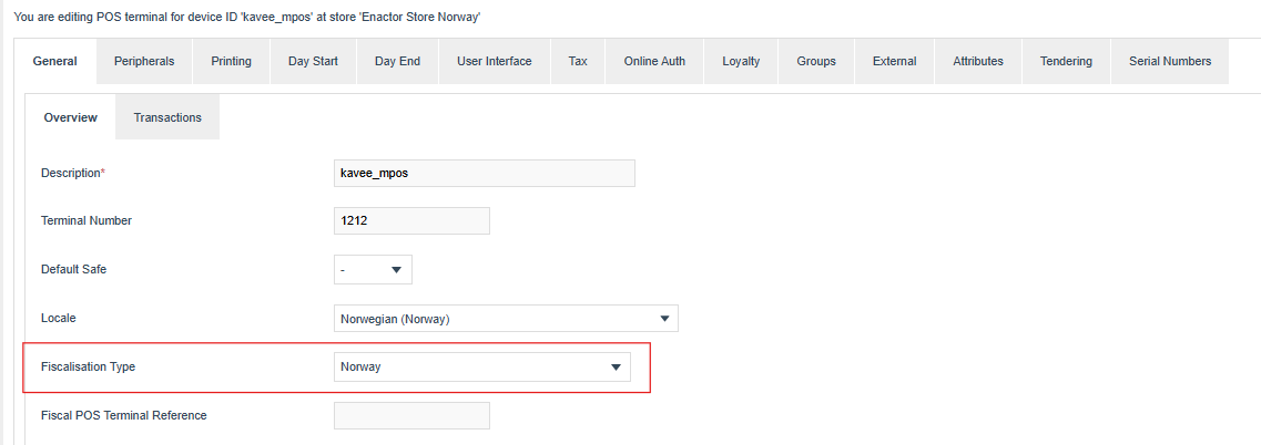 Fiscalisation Type should be set set to Norway