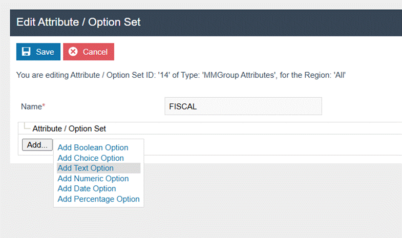 Navigate to Attribute / Option Set Maintenance