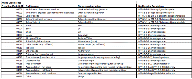 The following tax groups should be configured and broadcast to the Norwegian devices.