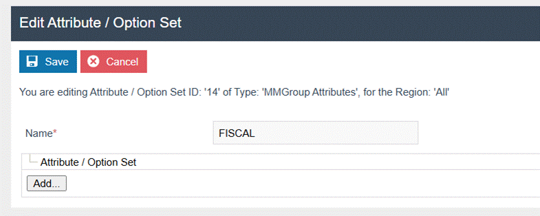 Click Add under the created Attribute/Option Set