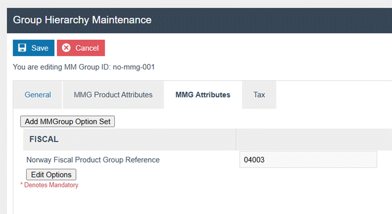 In Norway it is necessary to map products to an Article Group Code provided by the Norwegian Tax Authority. Unfortunately Enactor only supports a single MMGroup Hierarchy so to configure this mapping it is necessary to add an attribute to the MMGroups for products sold in Norway with the mapping the Norwegian Tax Authority.**