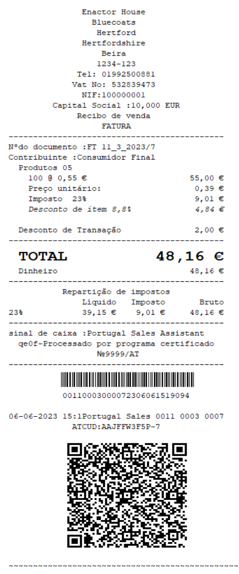 The general layout of the receipt in Portugal is not mandated, however, there are a number of mandatory elements that must be included on the receipt: