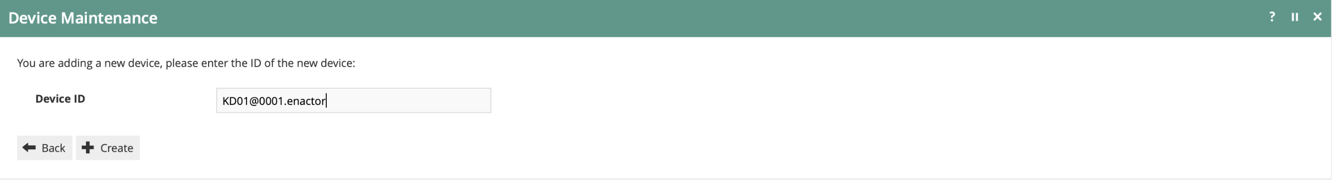 Enter a unique device ID e.g. <KD01@0001.enactor> the example provided