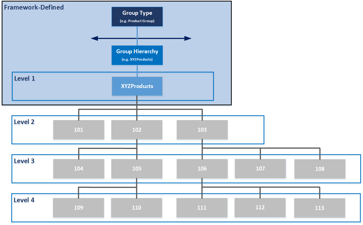 The merchandise hierarchy is managed as a merchandise management group. This group defines the merchandise folder structure that will be used by other entities including products.