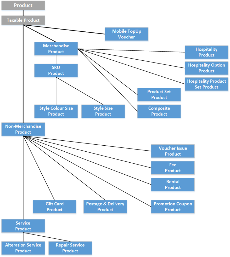 - Products: MerchandiseProduct, SkuProduct, StyleSizeProduct, and Style Colour Size Product