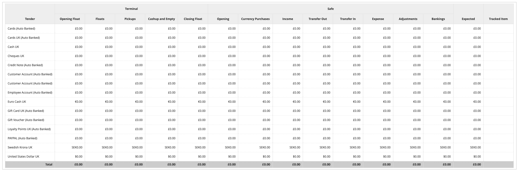 - Optionally, a closing balance which becomes the opening balance or float of the next session.