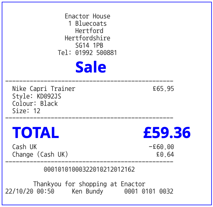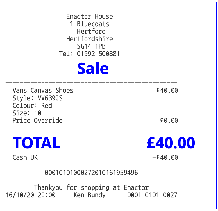 | completedBy | normalRetail SaleTransaction | Element | Details of the user who completed the transaction | completed By | |