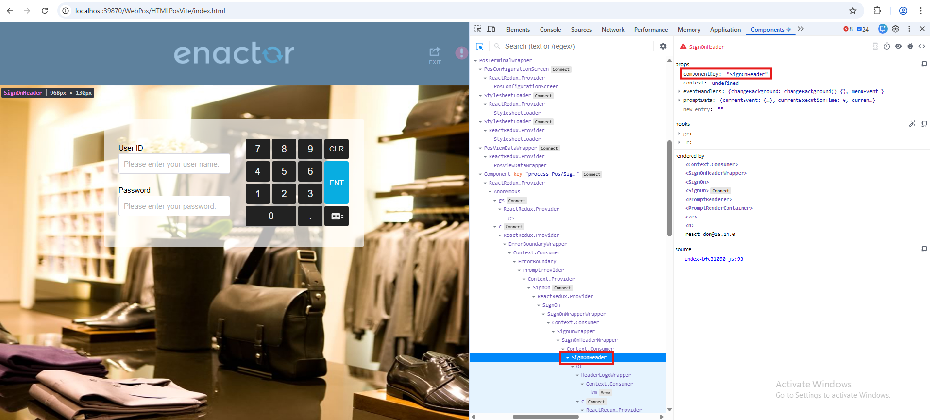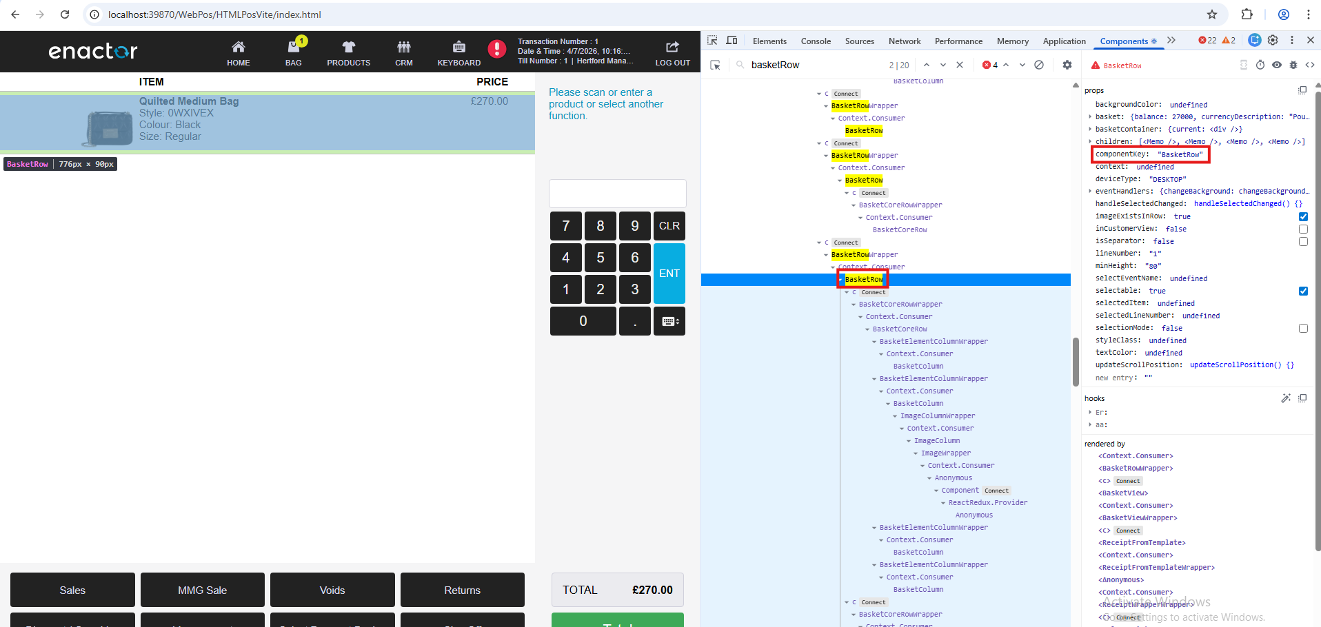 Use the React Developer Tools to find the componentKey for the BasketRow component, as described in the Viewing the Enactor Components section above.